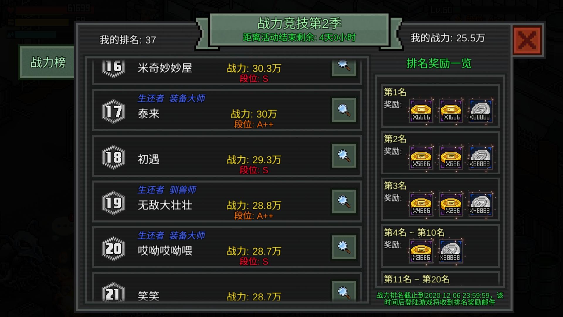 关于体验服战力的问题