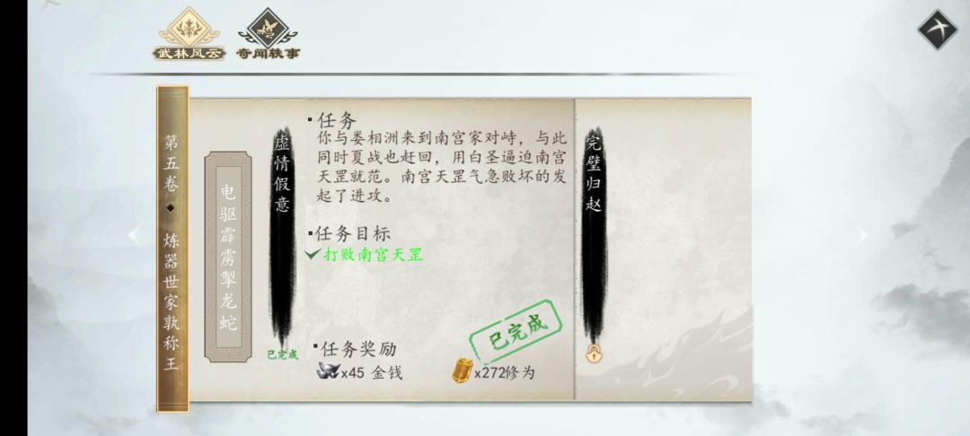 最后错别字,“坠毁”应为“追回”,这是豪侠线群雄讨伐南宫家后的对话,具体任务如图