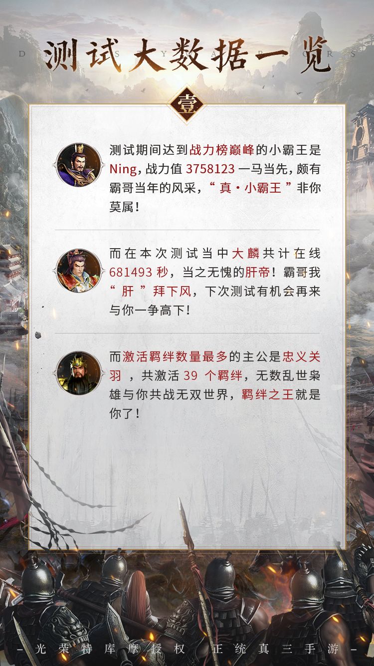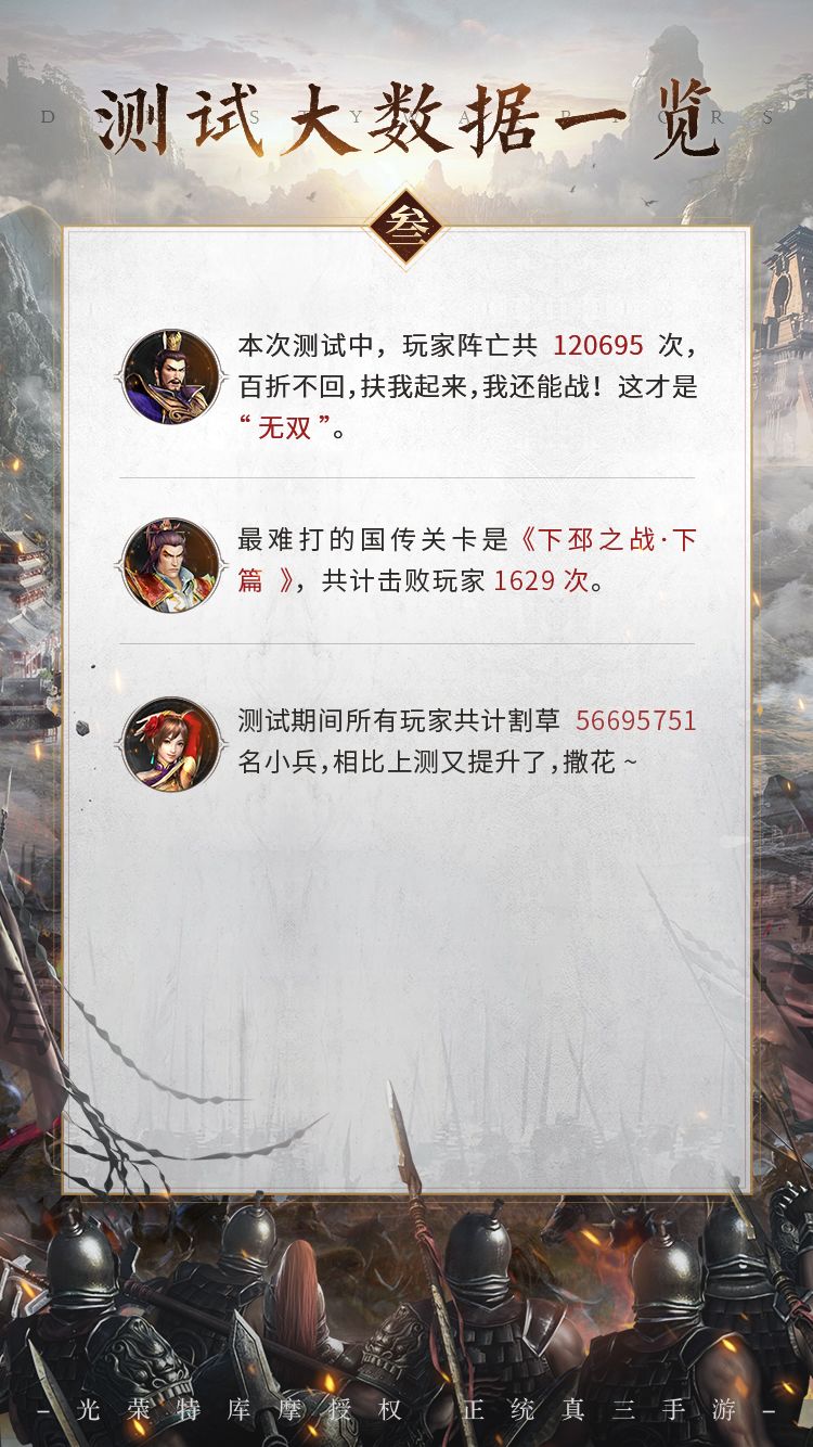 “将星测”已正式于12.1(昨天)结束关服,虽说有万千不舍,但是请期待开发组的测试调优及后续的消息叭~,感谢大家对《真・三国无双 霸》的陪伴与支持!
