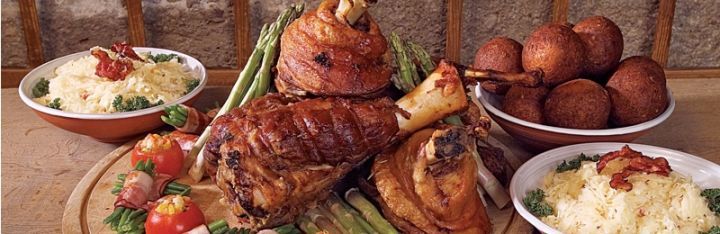 中世纪肉类的来源非常的广泛,尤其是对富有的王室和贵族来说,平民只能在节庆期间偶尔吃上一回肉。肉类包括牛肉、鸡肉、鸭肉、猪肉、鹿肉、羊肉、野兔、野猪、天鹅、苍鹭,甚至会出现一些奇怪的鸟肉,如:画眉、八哥、鹌鹑、布谷鸟、百灵鸟、孔雀等。随着1492年新大陆的发现,使得番茄、土豆、玉米等新食材进入了欧洲人的厨房,并永远得影响着欧洲人的味蕾。