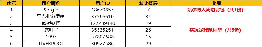 幸运奖:实况足球鼠标垫(共5份)