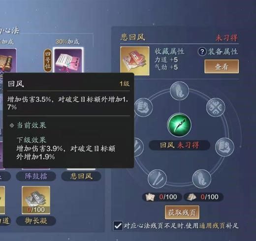 中期的群战主动心法需要优先替换成《八荒·暮雪》,可以降低全对受到的伤害并持续恢复血气,对于整个团队的生存和持续作战能力来说都非常重要。