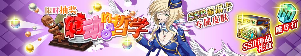 活动期间,消费一定的圣魔晶,赢取福利大奖,本次终极大奖为SSR英雄希琳卡限定皮肤「云中漫步」。