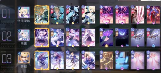 支援系角色推荐未来,携带《电震》协助处理决斗牌,并携带《团结》处理每4回合的群体aoe。