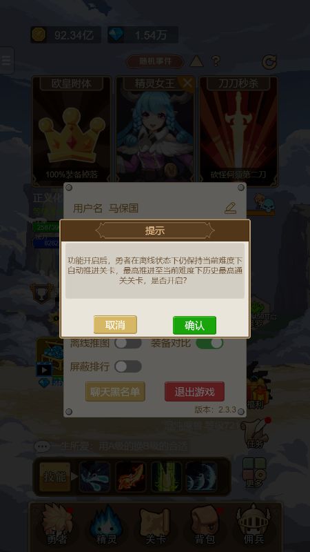 顾名思义,离线推图就是下线以后自动推图到历史最高纪录。刷经验和金币时记得关掉,免得勇者到处乱跑![[嗒啦啦2_哈哈]](https://img.tapimg.com/market/images/1bbca193685a619674d8260ad0ed7455.gif)