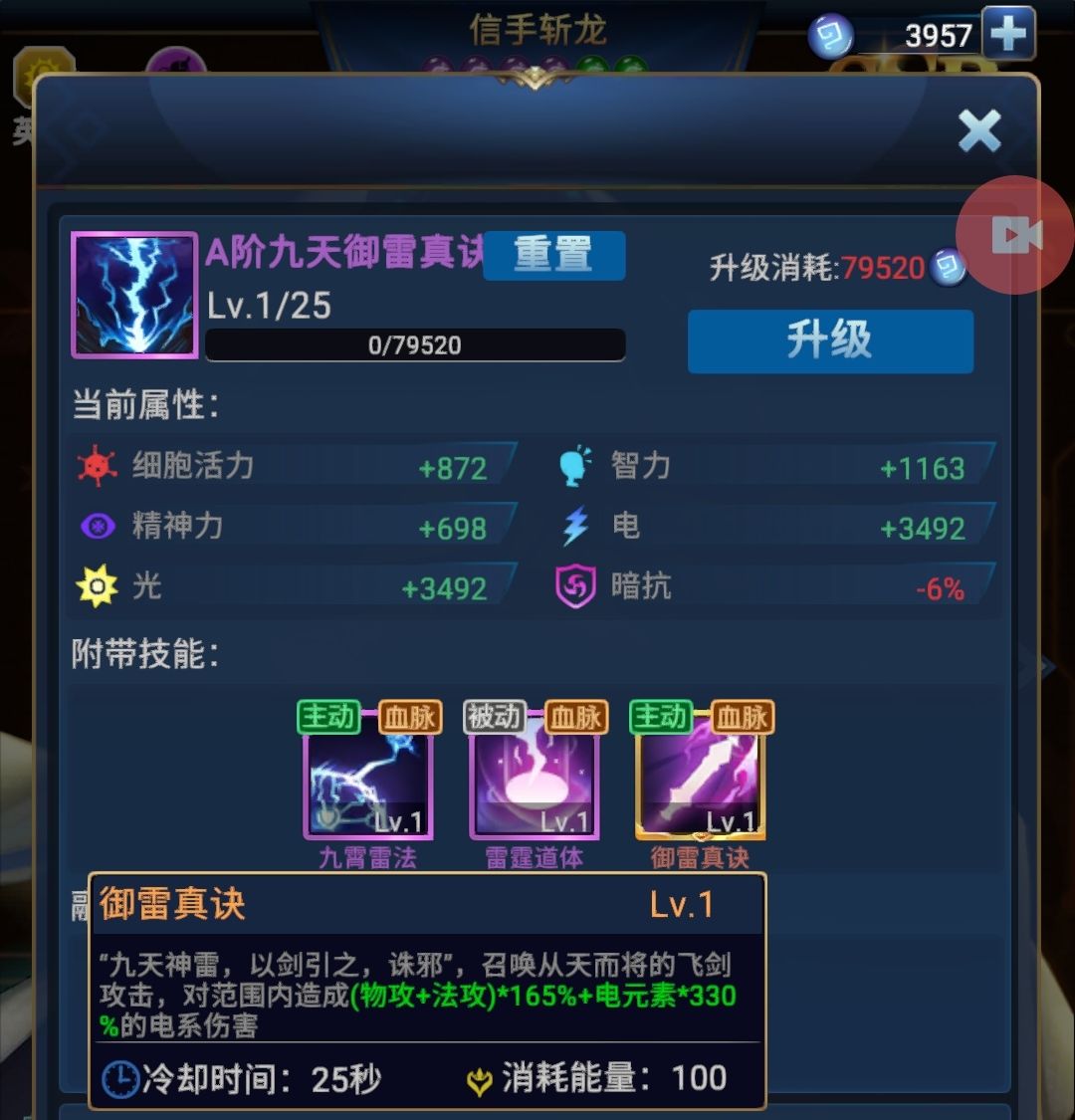 核心血统:【九天御雷真诀+电磁控制+真武荡魔密箓】,这三个技能全部加法攻电属性并且技能强大