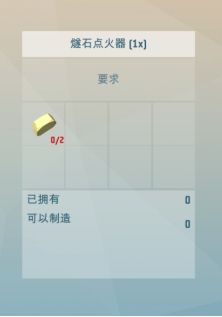 营火制备完成之后为未点燃的状态,点燃营火还需要准备一个燧石点火器,燧石点火器可以由两块燧石制成,燧石既可以在地面拾取,也可以从燧石矿中挖掘获得。