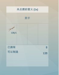 制作要点营火有两种制作配方,用木棍或木片都可以制成未点燃的营火。
