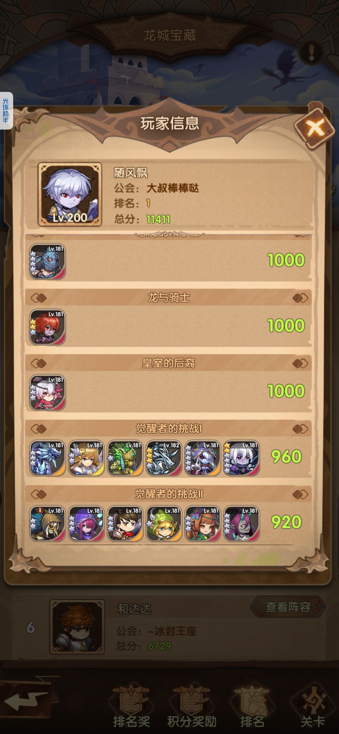 7、本次龙城非常有挑战性,最后感谢收号的玩家友情借号。