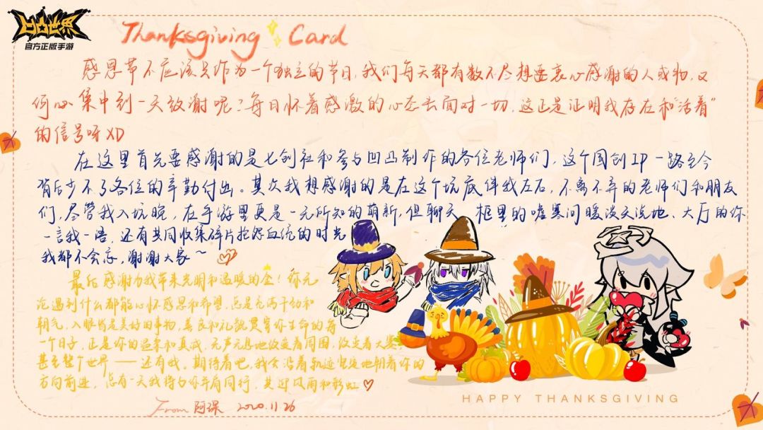 经过长时间的精心挑选与抉择,球球选出了部分贺卡进行展示,并公布本次感恩节活动的获奖名单。名单将于文章末尾展示,请各位天使注意。