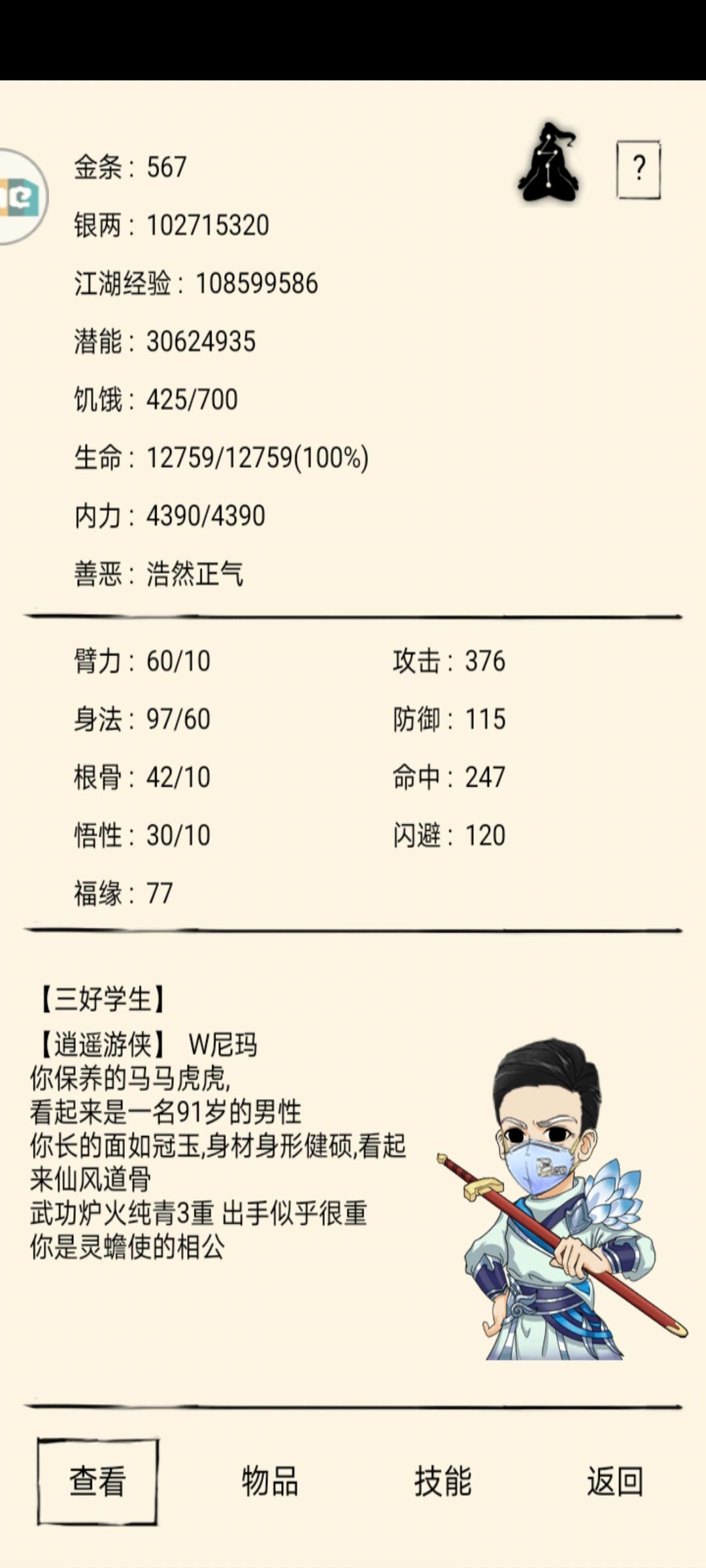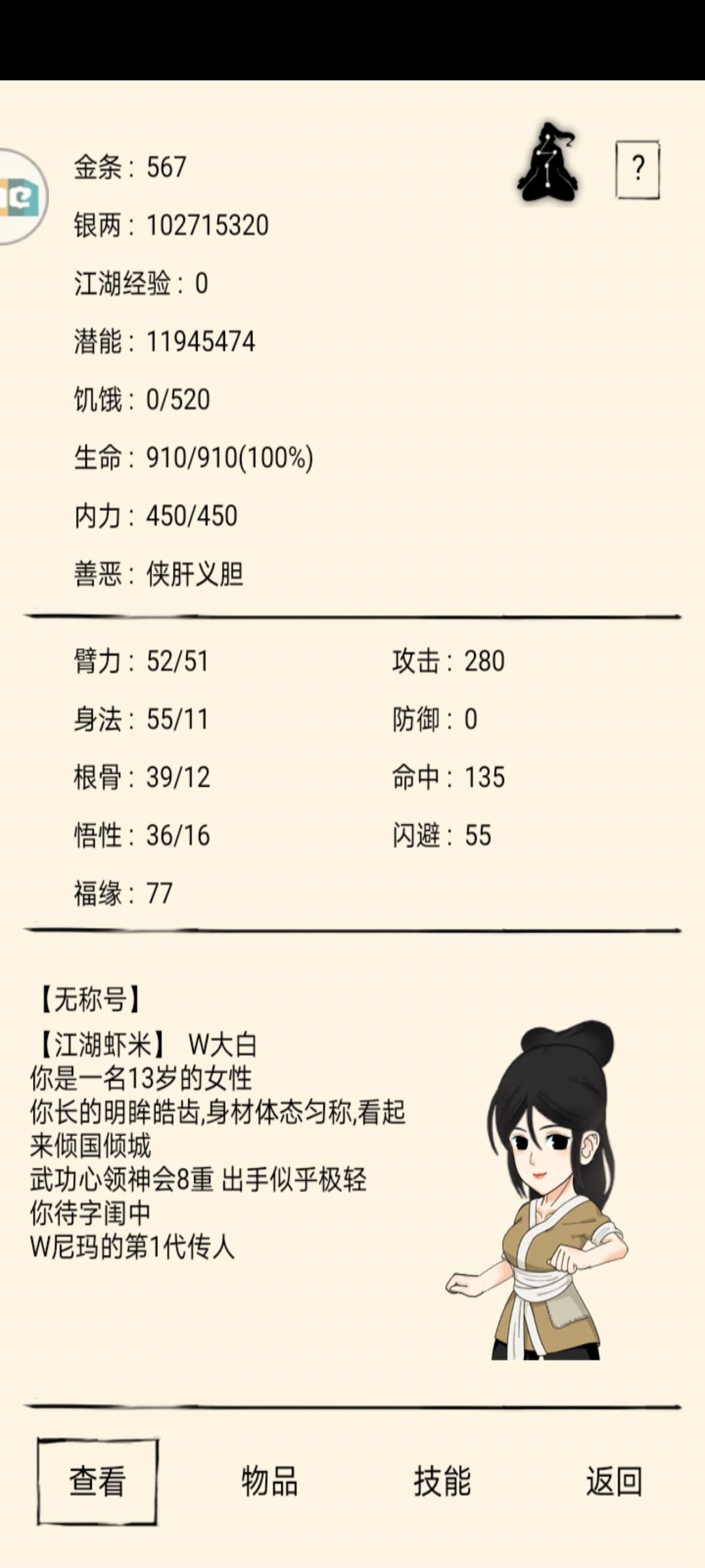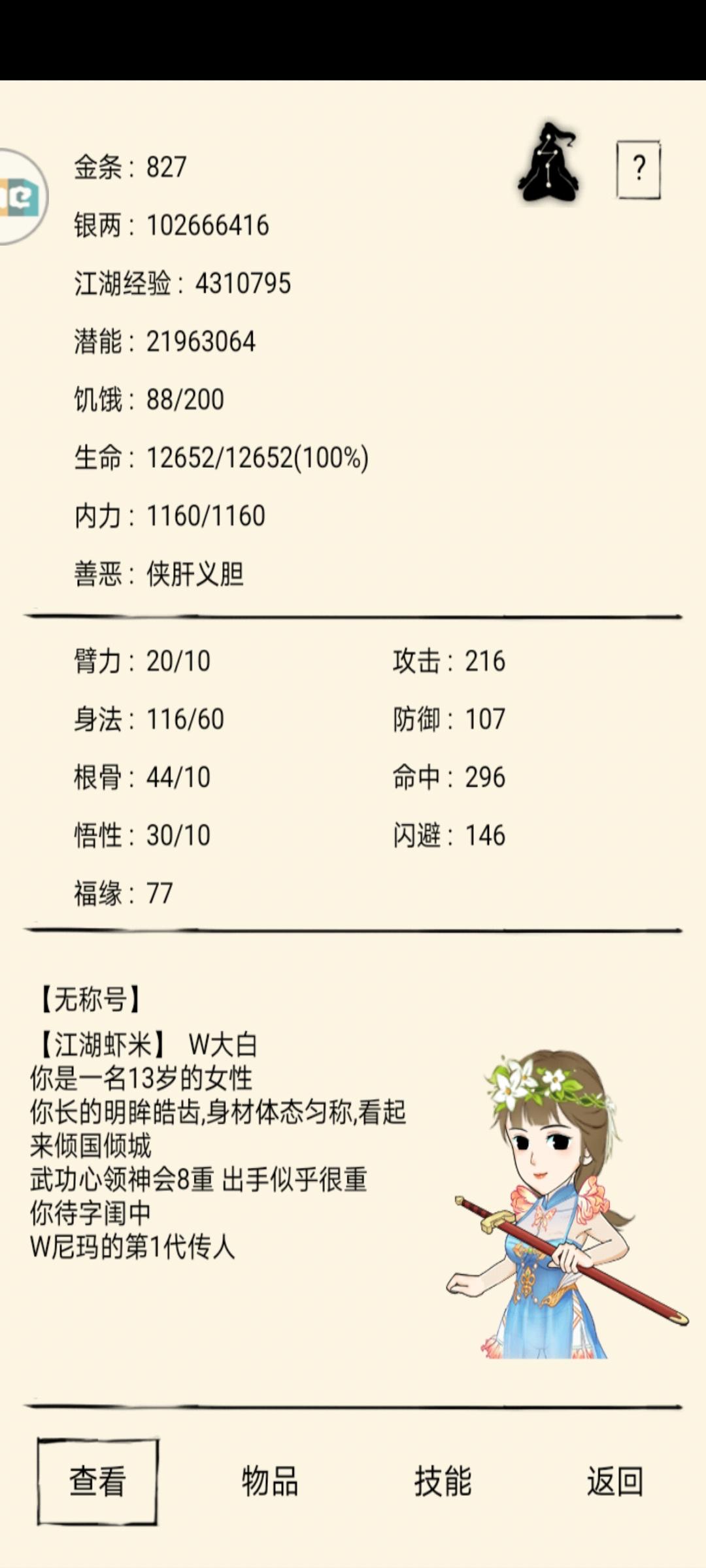 后面有刚轮回后的样子,还有就是出村前的样子。再后面的自己看吧。走的时候面板3000多万潜能吧。就是忘记了吃散工丹可惜了(这个就很无语)。还要再从头过一次任务好心烦,再有就是本来有个小号在官区,结果app冲突这就简直了