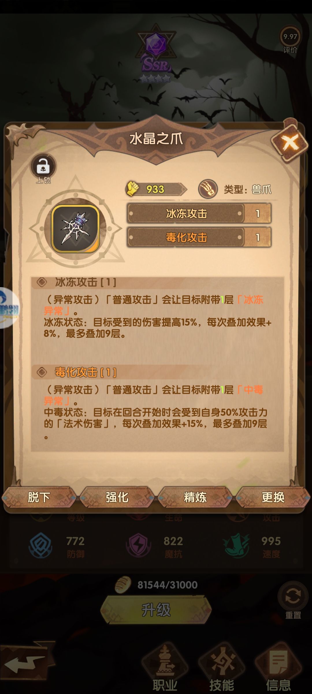 自己做了好多橙装没出过词条,今天装备商店一刷新竟然斧头和爪子都出了