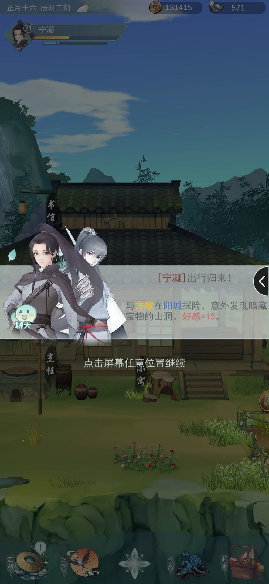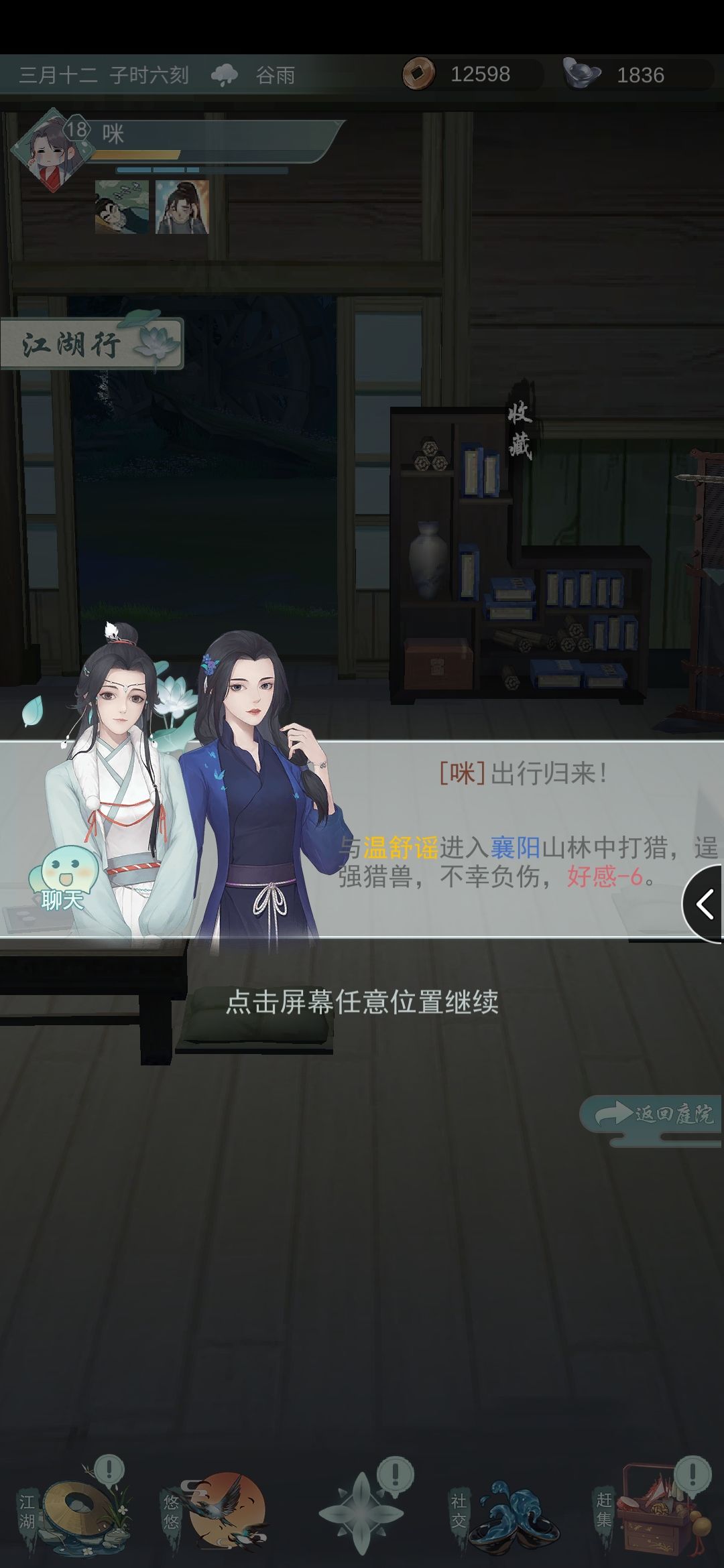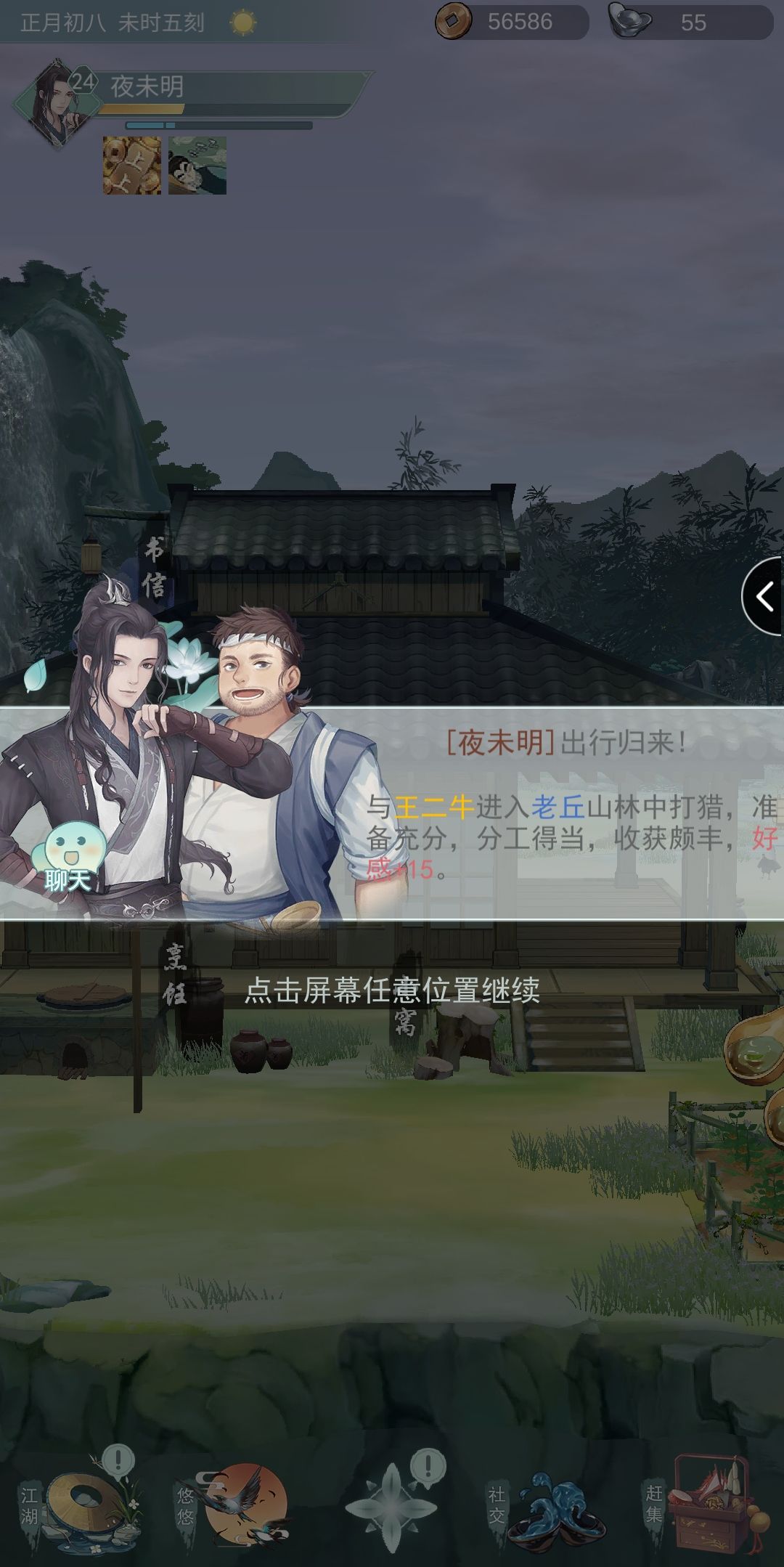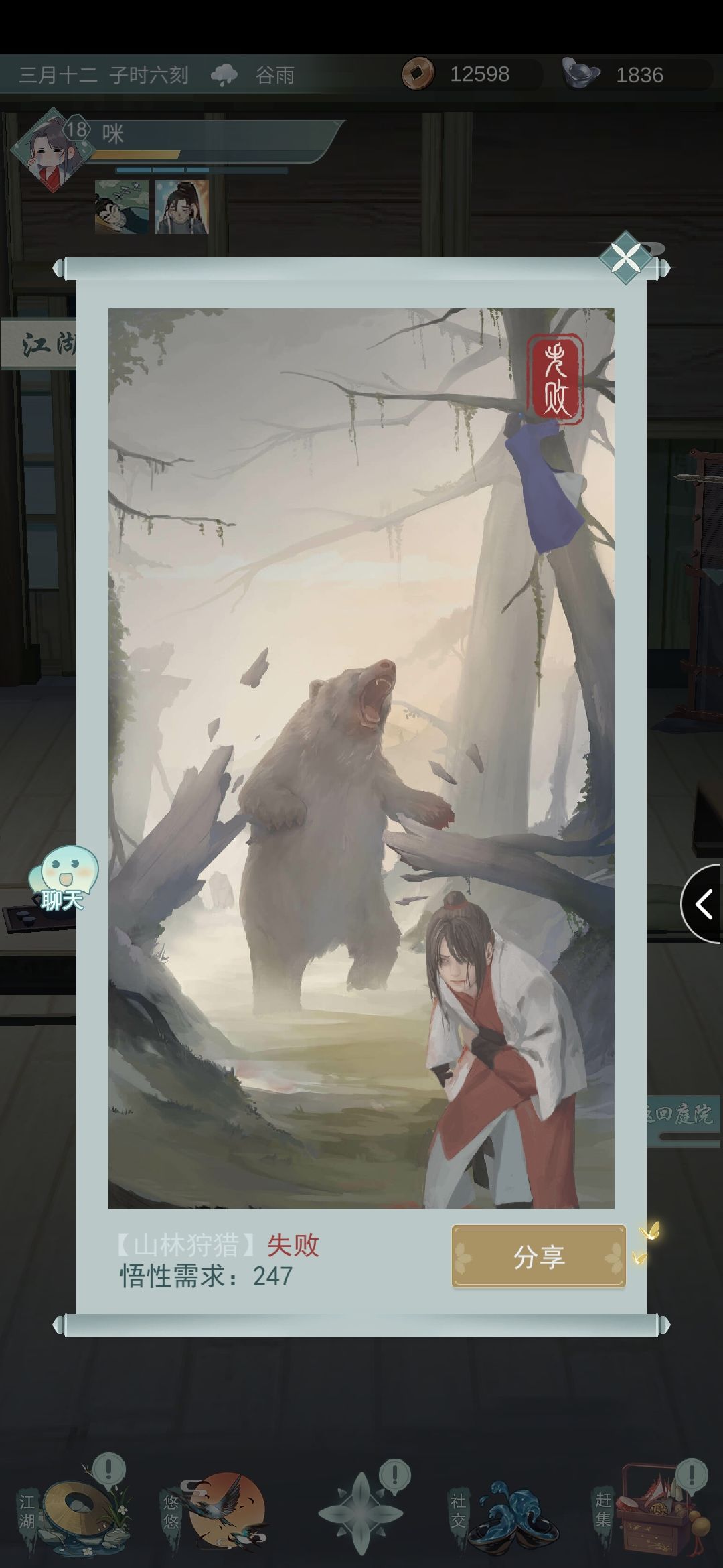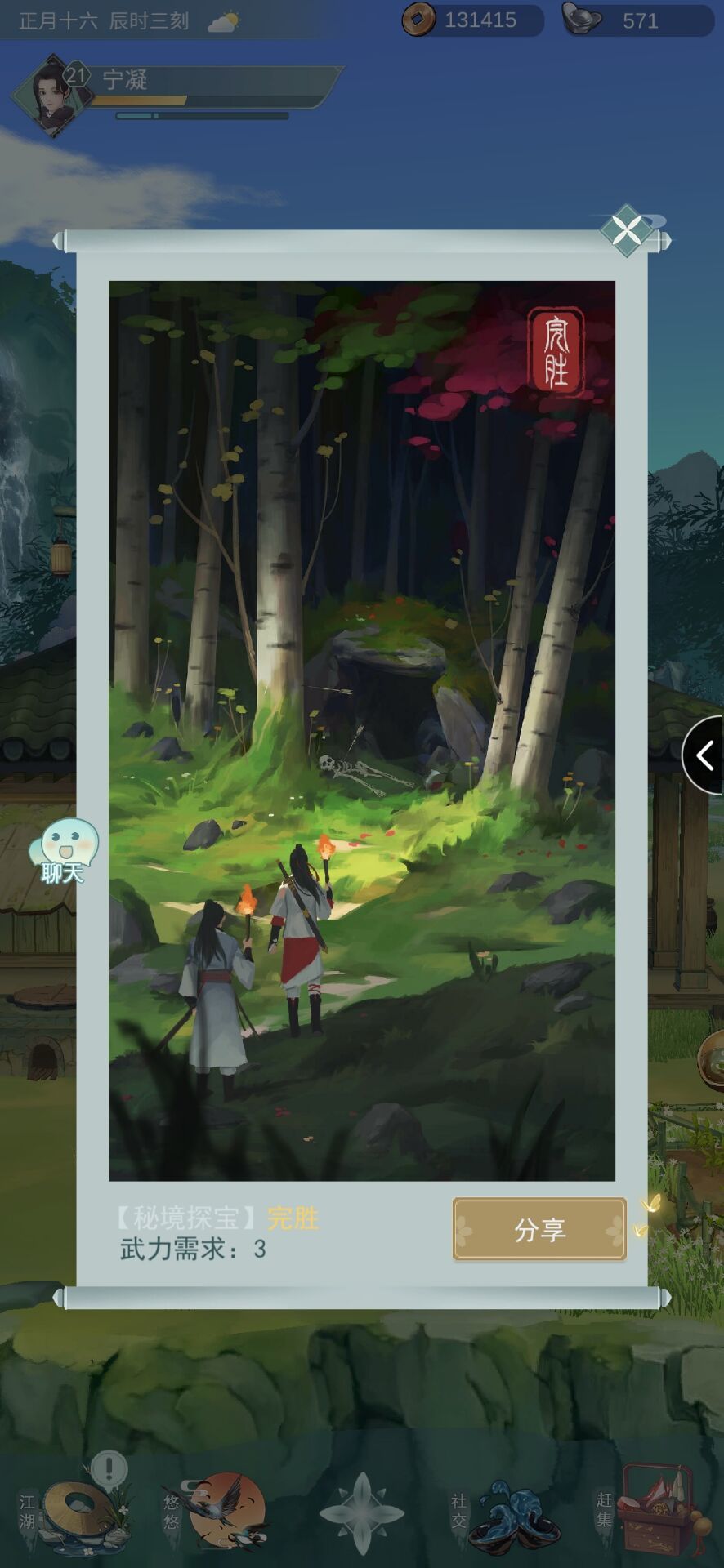 ①荆州襄阳山林打猎可能解锁(失败了师姐会爬树上,真可爱)。