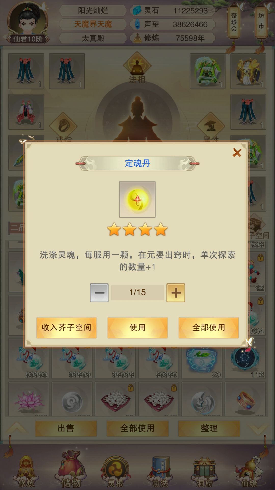 ②卖。如果确定定魂丹上限不再提升那么卖就是最佳选择,直接卖易出错,销毁宝库太麻烦,可以考虑在门派宝库或者神魔战场宝库兑换灵石啥的。
