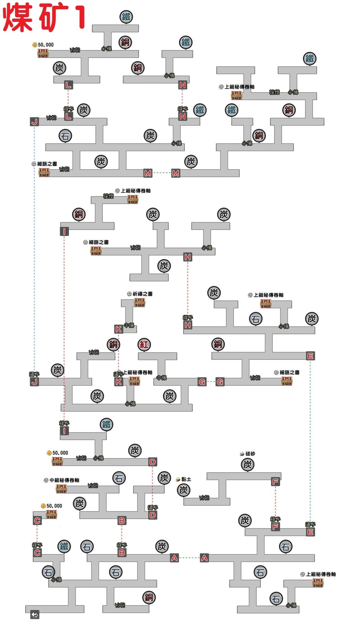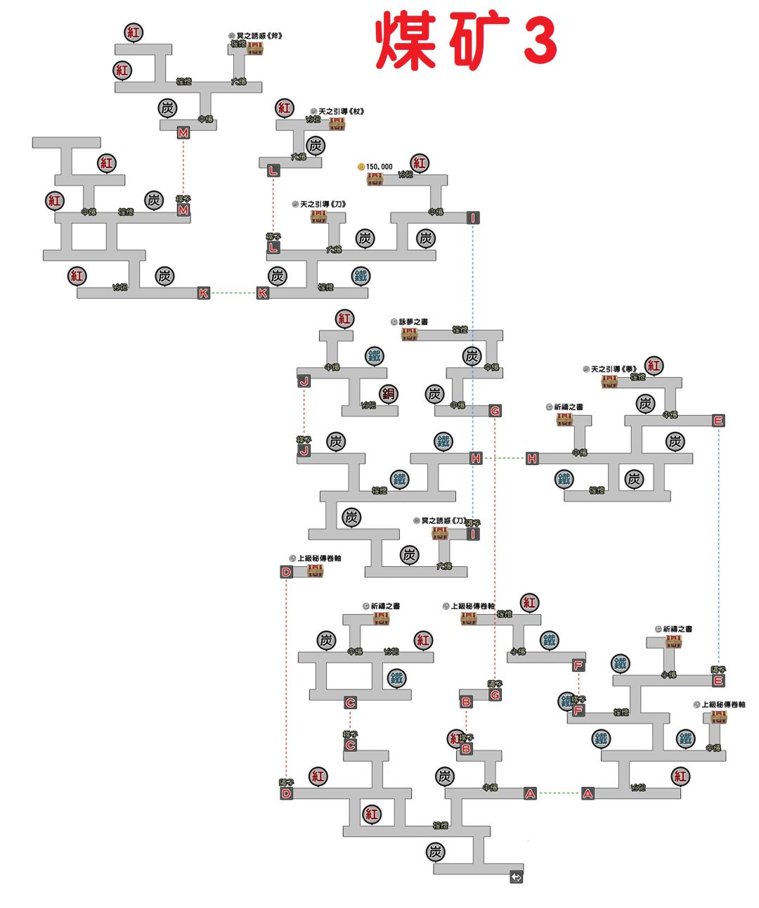 此外,还可从煤矿宝箱中获得:梦书×1(在煤矿3)、天杖/天刀/天斧/天弓/天拳/冥刀/冥斧/冥弓×5。