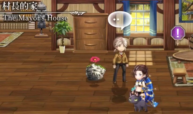 ①必须先完成外传第2话,即造完桥。然后在森林第2张图右上角,点叹号,树桩会出来,然后会又回去,再次点叹号,树桩会重新出来,然后慢慢向左移动,队伍成员不要变更,保证树桩不会跟丢,跟丢了要重新回去点叹号。一直移动到村子,触发剧情,树桩开始在村子中居住,如下图。
