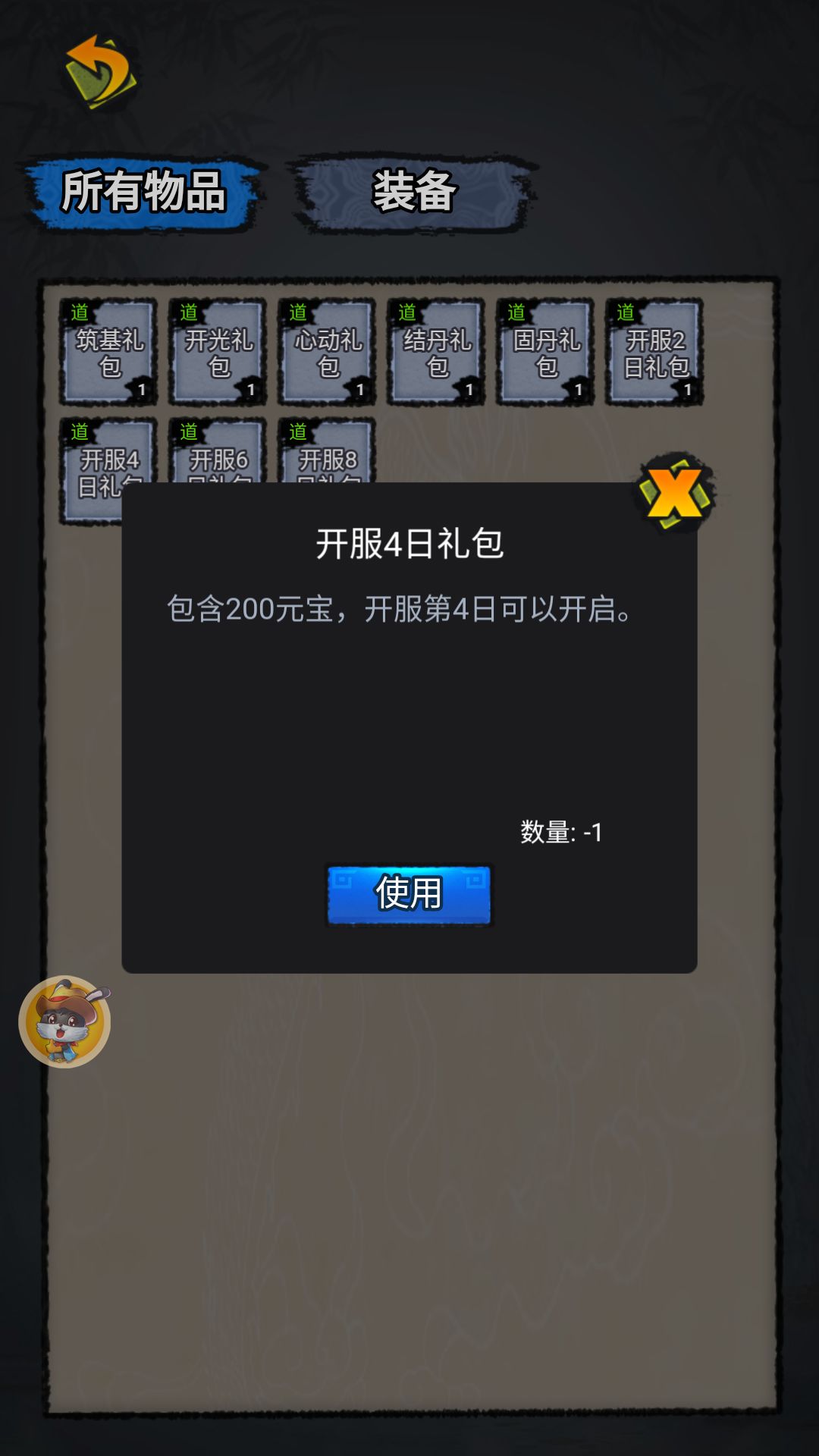 领了礼包,使用失败,然后就显示成0甚至是负数,这个是bug吧?
