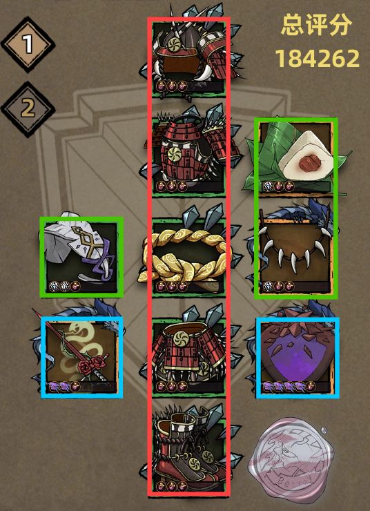 红为防具,绿为饰品,蓝为武器