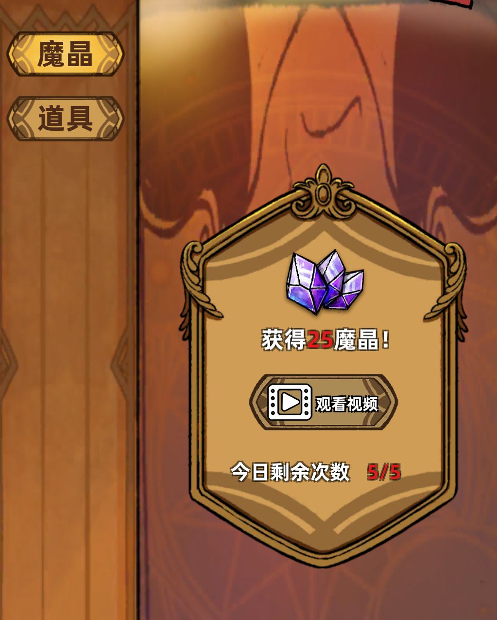 1、观看30s视频,获得25魔晶,每天共五次