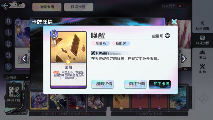这游戏我们可以上阵三人,加上本身角色卡三张日常(除去大招),加上通用卡四张,7×3等于21张,而我们最高手牌是10张。一回合共五费