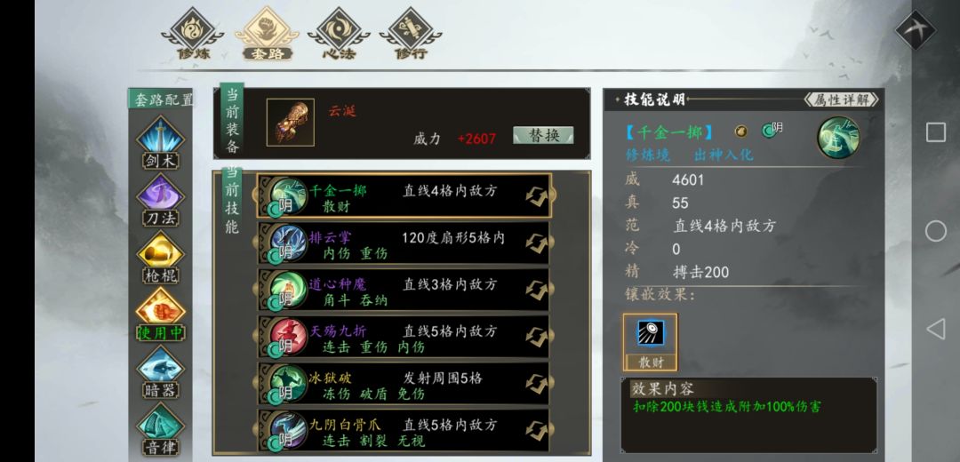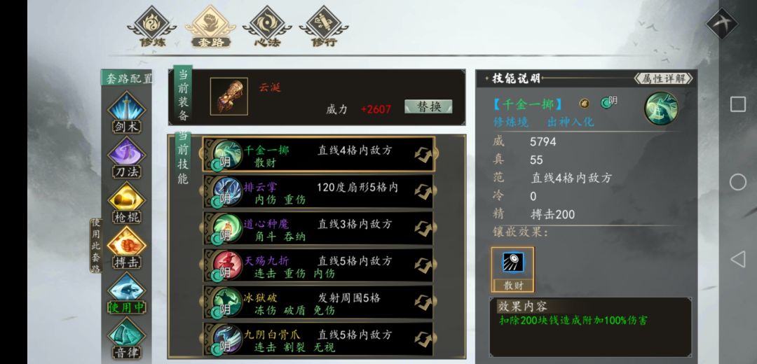 这套配置所有的功法,只有千金诀有主线剧情要求。但是也非常好拿