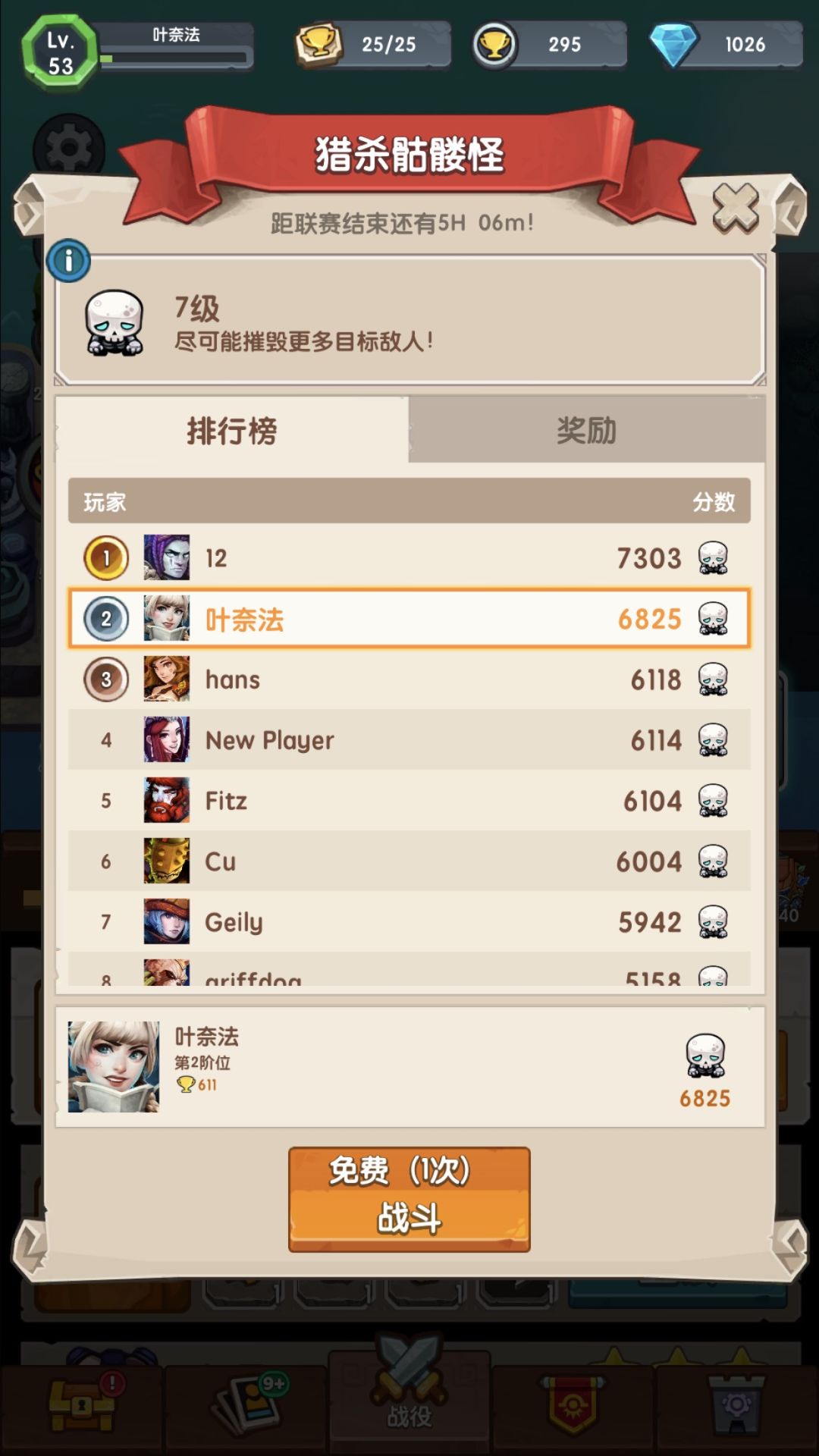 我这是打了两次试了2个阵容才打到6000多
