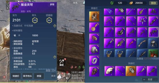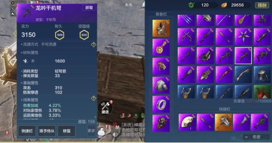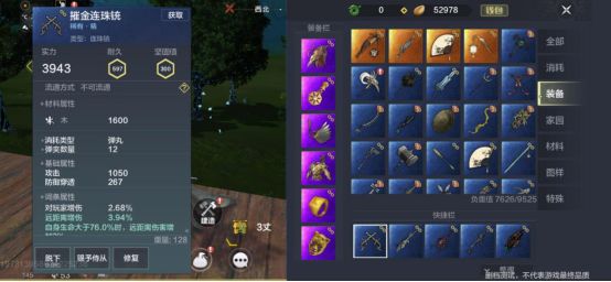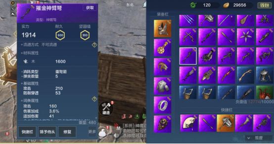 配件搭配为微幅感应器,弩机钩心,弩牙悬刀和桦皮箭囊