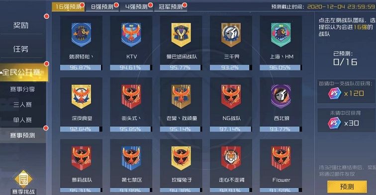 1、三人战队赛赛事预测现已上线,参与赛事预测,赢海量赛事币。