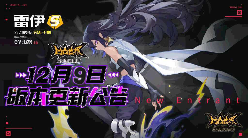 新增参赛者「雷伊」专属UP卡池,卡池开放时间为:12月9日9:00-12月23日8:59。该卡池「雷伊」出现率占S阶参赛者出现率的50%,前50次搜索必定获得「雷伊」