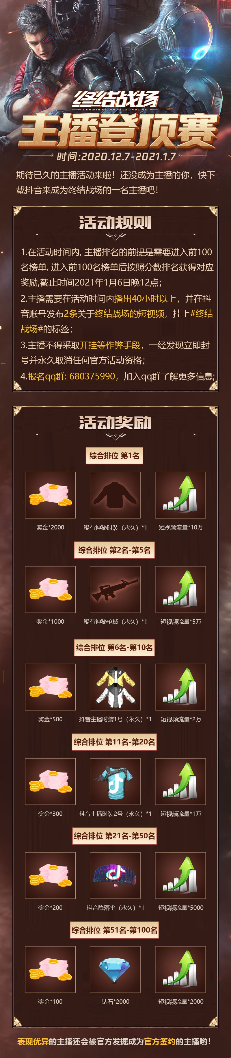 《终结战场》主播招募活动今日开启!即刻参与活动,即有机会获得超多福利哦!不但获奖名额多多,奖励更是爽快直接发现金!