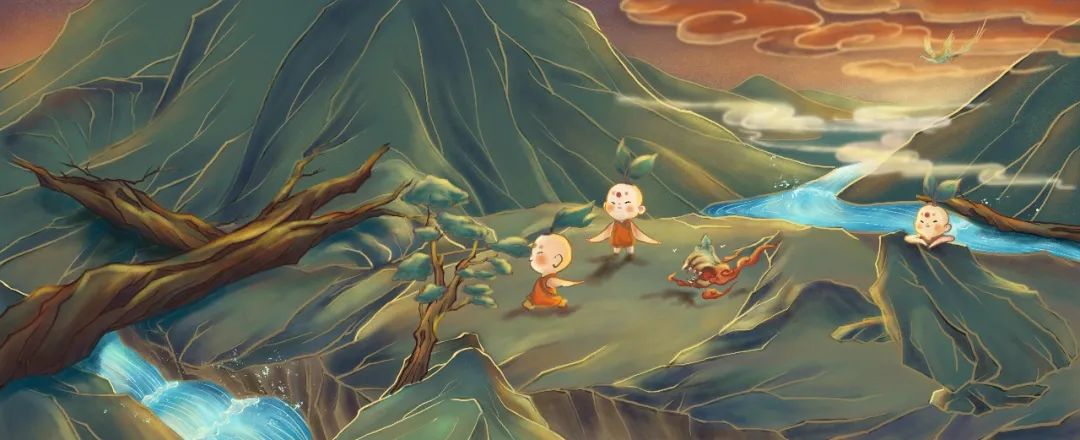 有戴叶童子,蹦跳嘻笑,言语光怪不知为何