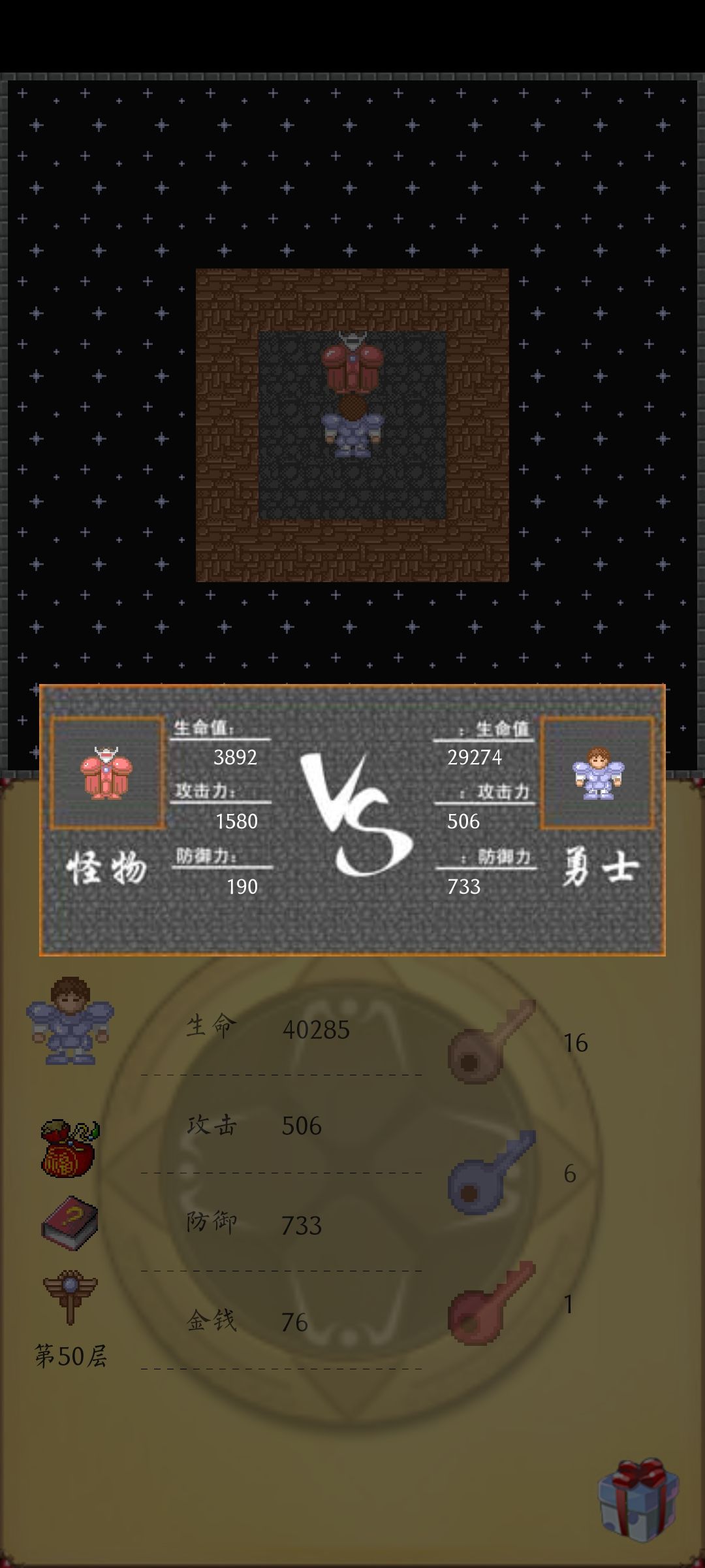 后来也用智能设备下载过《魔塔50层》,但由于各种失误始终没能打败魔王,直至今夜,我成功了! 儿时把学习机摁坏了也没通关,今天,我成功了!芜湖!