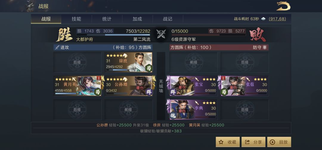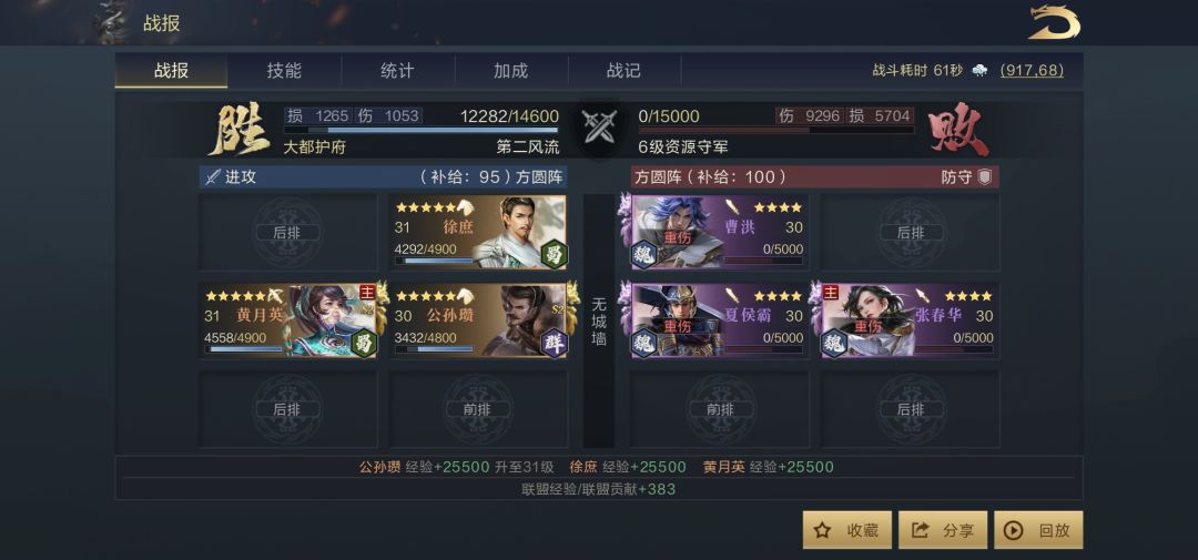 昨日凌晨基本能平掉第二队大部分兵力,余下补刀可以直接过,但非单穿,今早起床升级领兵之后,选择张春华队基本实现较低损耗穿破六级地的