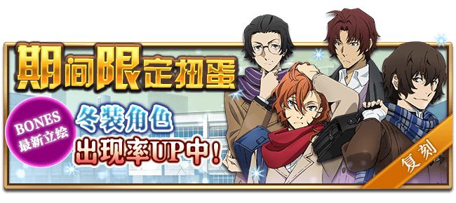 身穿冬装的各位:太宰治、中原中也、织田作之助、坂口安吾,限定扭蛋复刻登场!