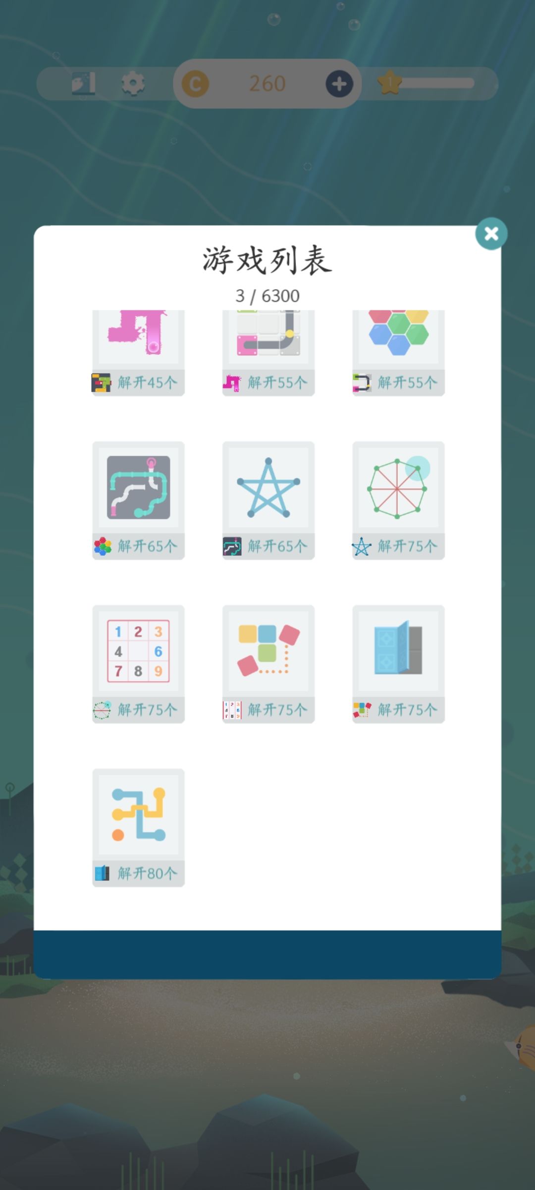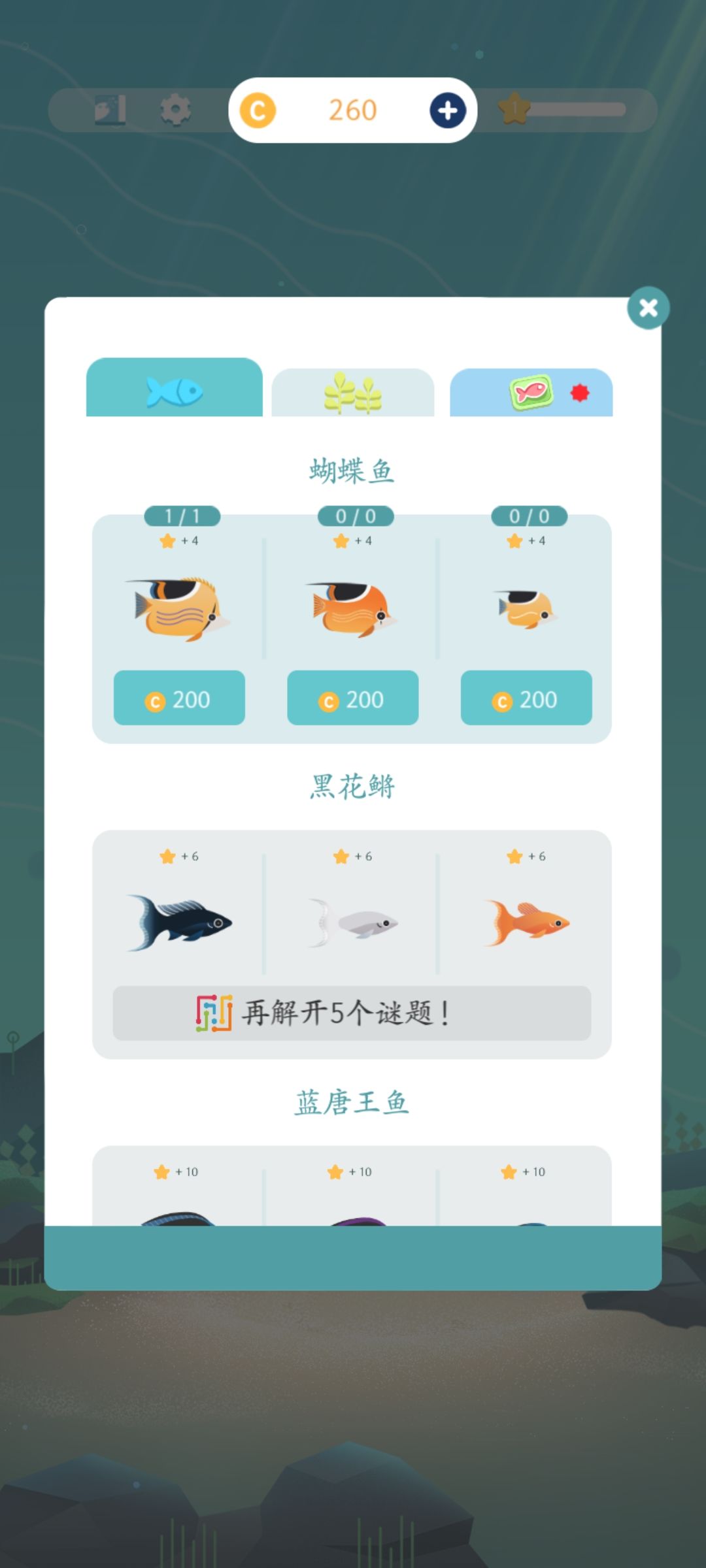 玩各种益智游戏解锁装扮水族馆