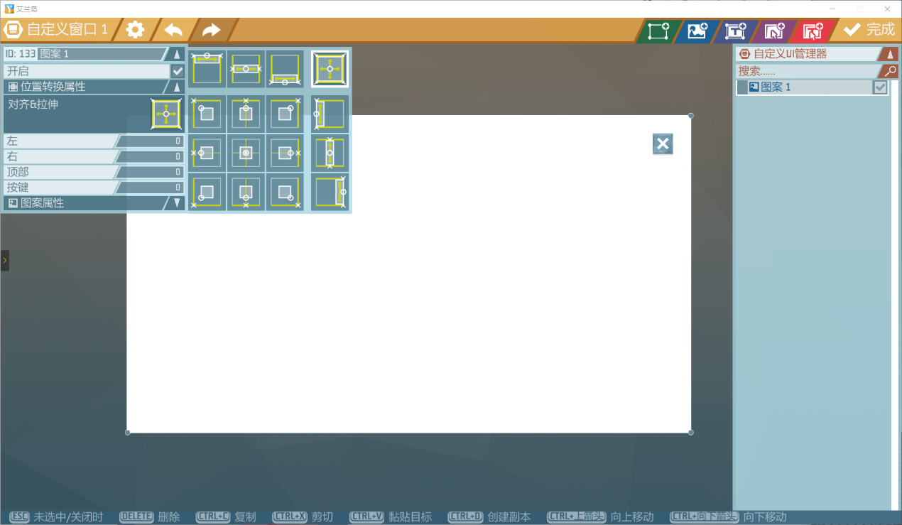 · 自定义UI管理器中或画布中,选中UI控件,按键盘“DELETE”键删除;