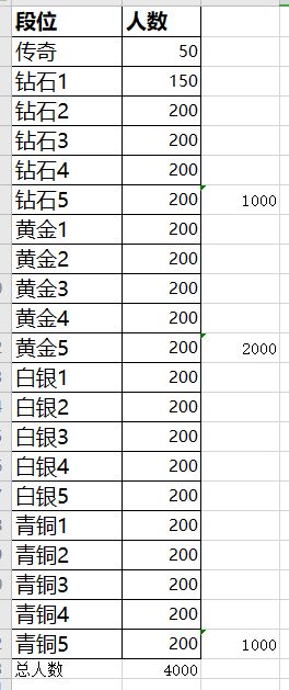 钻石到传奇前1000人升层,青铜1000人降层。白银到黄金2000人层数不动。