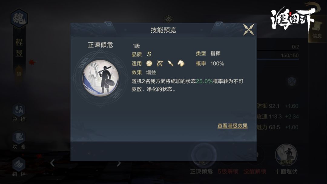 并且他可胜任除步兵以外,大部分阵容搭配,兼容性非常高,但因为武技对友方步兵没有效果,所以对步兵武将不太友好。