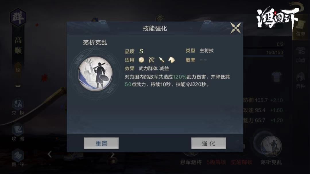 建议搭配一些不计算属性的辅助技能,或是控制技能强化高顺在场的作用。配合自身武技,可以克制一些以增益为主的队伍和武将。