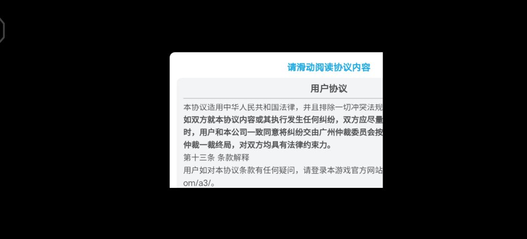 下载之后第一次打开,要同意这个协议,但是只显示一小部分,没有确认同意的按钮,这怎么玩?