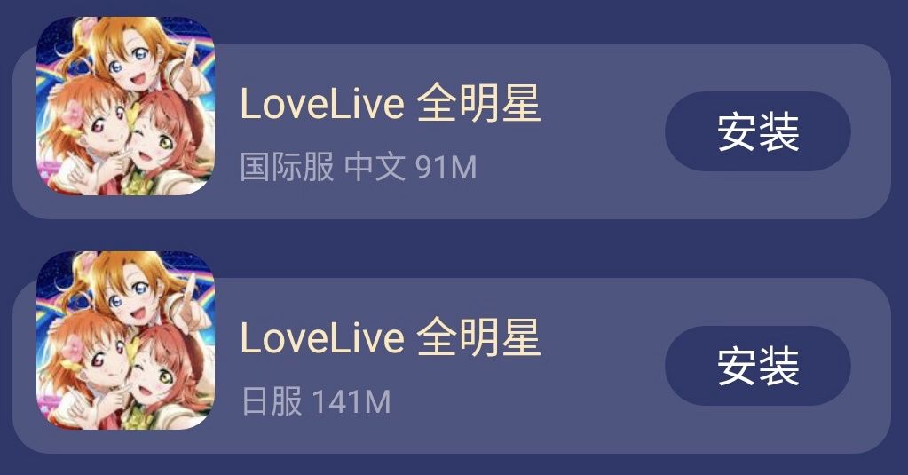 日服需从日区商店下,其他商店均为国际服版本(除国区商店外)。可以都用英文名搜“Love Live! All Stars”