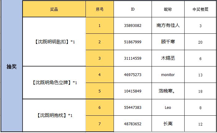 8楼玩家放弃中奖奖品,重抽获奖名单如下: