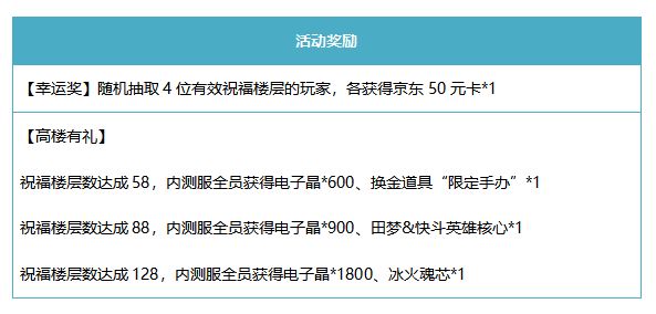 祝福楼层数达成88,内测服全员获得电子晶*900、田梦&快斗英雄核心*1