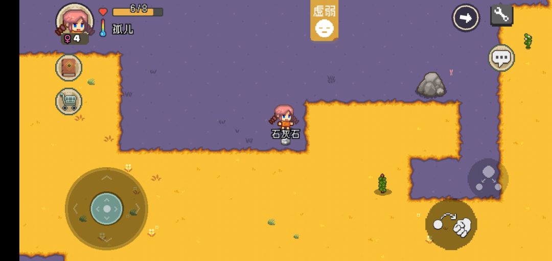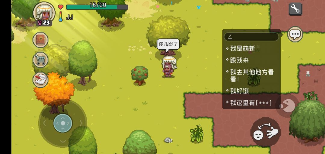 c方案.拿起一样东西后右侧的按键可以向王者放技能一样向四面八方使用,例如我拿起一个石头,右侧就会出现,拿起,放下,合成键,我要是想对在我左侧的杆子进行操作就按合成键向左滑就可以实现将杆子变成家园标记。