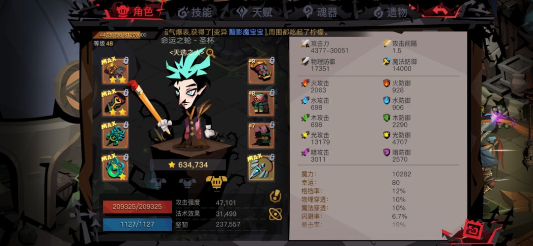 我这个属性过普通十分简单,也就19层换群盾打,魂器都没开。