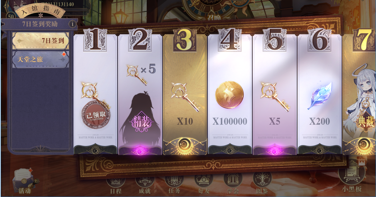 馆主在进入游戏前七天登陆签到也会获得一些钥匙,推动“天堂之旅”任务进程也会获得钥匙。
