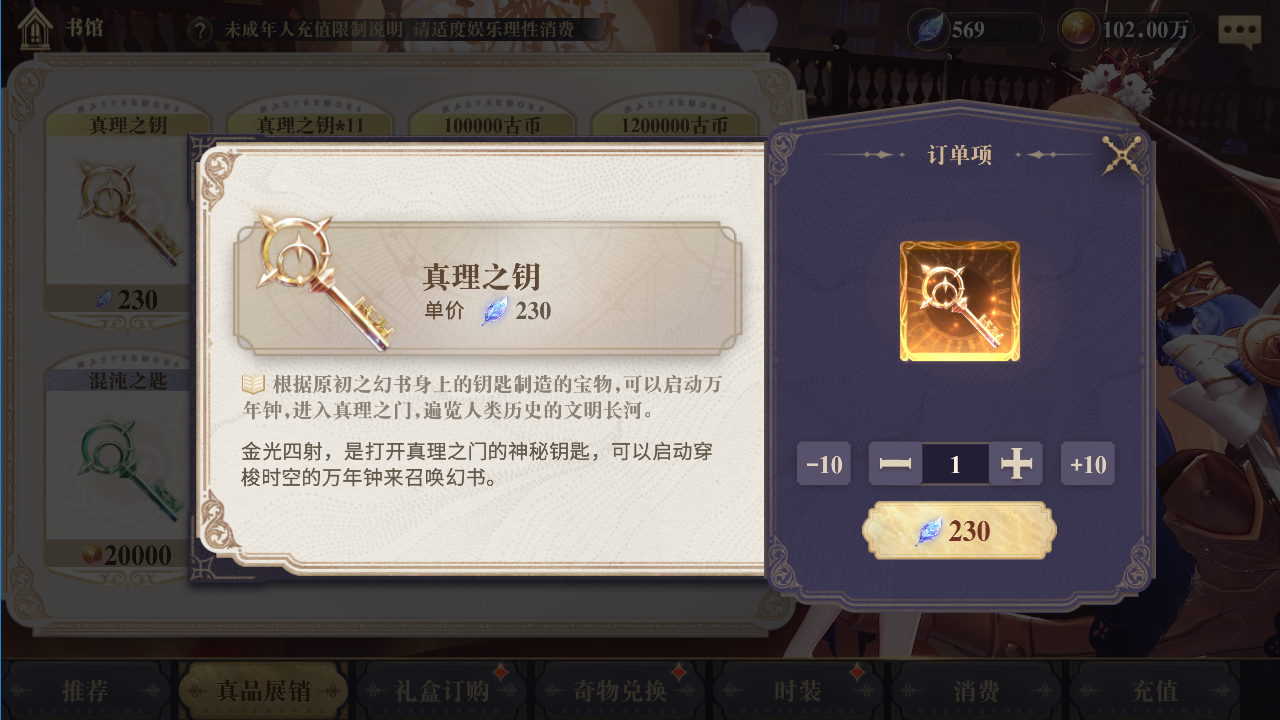 我们召唤幻书就要用到钥匙,钥匙分为两种,真理之钥和混沌之钥,分别对应了两个召唤之门,真理之门和混沌之门,真理之门中包含了平装、精装级典藏。