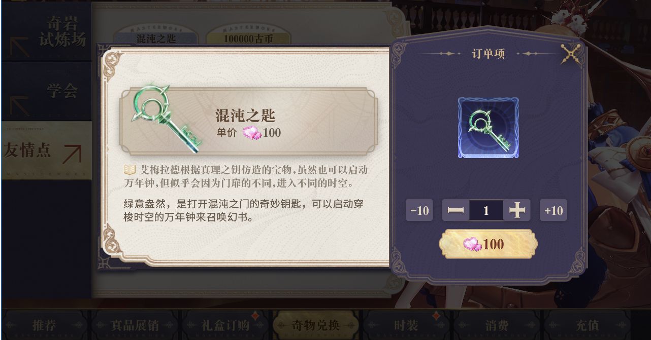 除此以外,友情点也可兑换钥匙,但仅限混沌之钥。