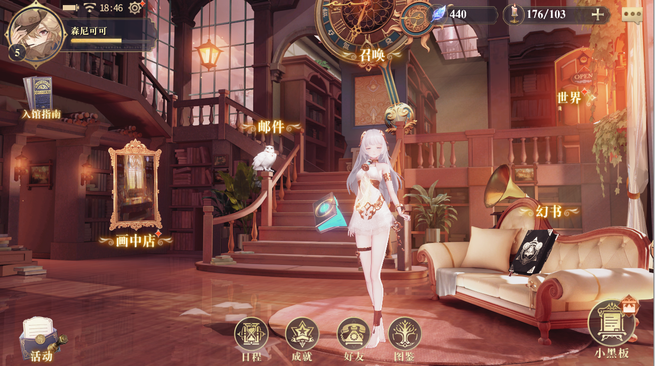 玩家可以在书馆中点击看板娘《沙之书》阿莱娜,然后点击右边的切换,找到你心仪的幻书,将她替换成你书馆的看板娘。然后就可以选择赠礼了,礼物的种类非常之多,根据幻书的性格选择对应的礼物可以获得更多的好感度。好感度可以增强幻书的援护技能,善用援护技能可以极大的增加我们过关的几率。这点非常重要,并且同类幻书还有一定的加成效果。所以在送礼的时候,也请根据阵容需要选择援护的幻书。