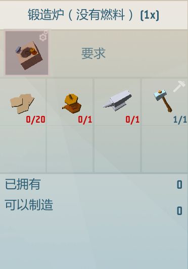 锻造炉:粘土*20,风箱*1,铁砧*1,任意锤子*1